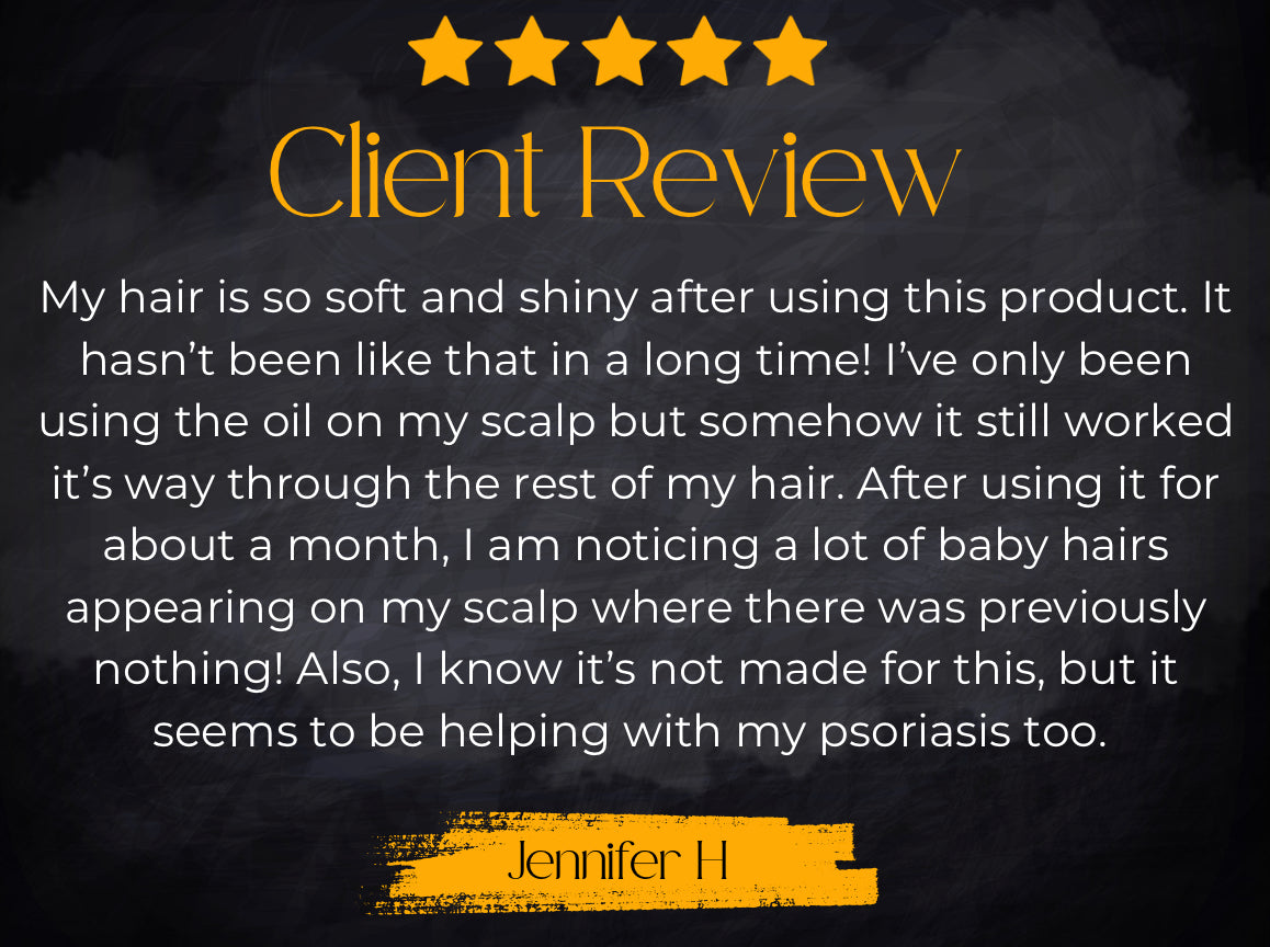 This wonderful blend has a combination of pure carrier and essential oils including Castor, Jojoba, Argan, Lemongrass, Cedarwood, Lavender, Rosemary, Cypress, Ginger, Eucalyptus and Tea Tree.